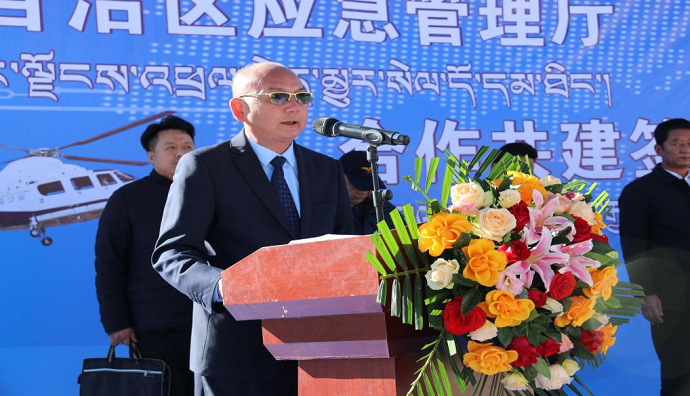 洪力代表區(qū)應急管理廳對西藏民航投為自治區(qū)航空應急救援所作出的突出貢獻表示感謝。他指出,此次簽約授牌儀式,是深入學習貫徹習近平總書記關于應急救援體系建設重要指示精神,全面落實自治區(qū)黨委、政府加強航空應急救援力量建設的重要舉措,希望雙方凝聚共識、形成合力,著眼我區(qū)自然災害和事故災難特點,本著“資源共享、共建共用、協(xié)同應對、一體聯(lián)動”的原則,以救援任務需要為導向,以救援能力提高為核心,立足現(xiàn)有資源,著眼長遠發(fā)展,突出優(yōu)勢互補,強調實訓實戰(zhàn)。