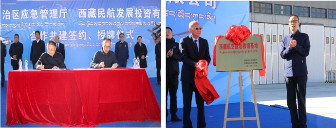 11月16日上午,西藏自治區(qū)應急管理廳與西藏民航發(fā)展投資有限公司戰(zhàn)略合作協(xié)議簽約暨“西藏航空應急救援基地”揭牌儀式在拉薩舉行。區(qū)應急管理廳黨委副書記、廳長洪力,區(qū)發(fā)展與改革委員會副主任付玉壽,西藏開發(fā)投資集團有限公司黨委書記、董事長,民航投公司董事長祁騰武共同出席簽約和揭牌儀式。