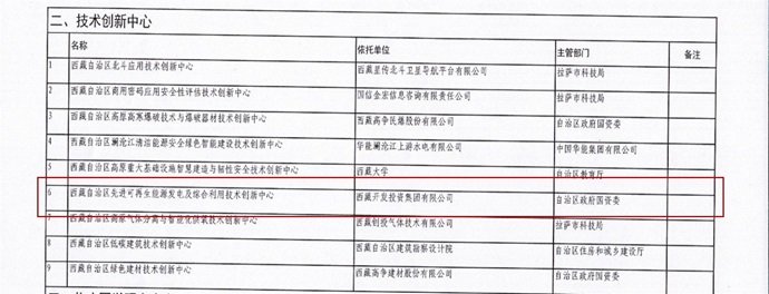 集團(tuán)公司申報(bào)的“西藏自治區(qū)先進(jìn)可再生能源發(fā)電及綜合利用技術(shù)創(chuàng)新中心”成功批準(zhǔn)籌建