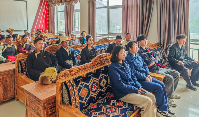 ▲嘎堆水電公司黨支部與索囊村黨支部聯(lián)合開展紀(jì)律教育。劉亮霞 攝
