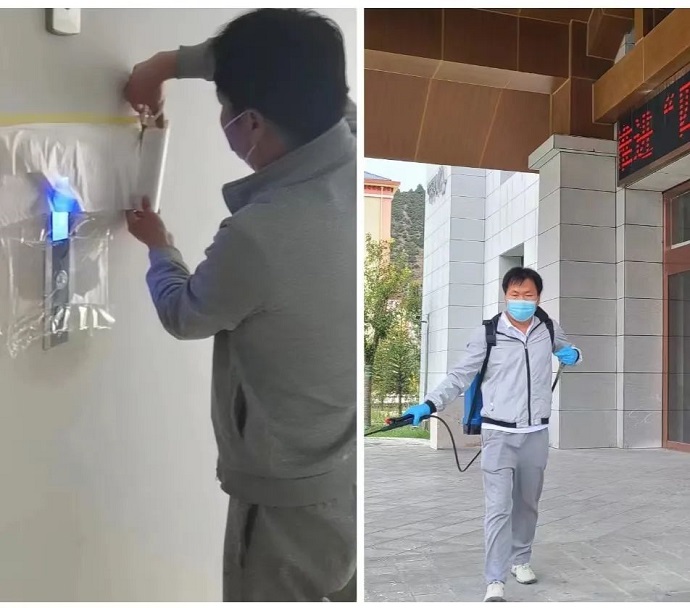此次疫情發(fā)展伊始,酒店周邊已多處發(fā)生感染病例,距最近的高風(fēng)險(xiǎn)區(qū)域不到100米。孫海崗帶領(lǐng)部門人員,沖在“疫”線,堅(jiān)持每天對(duì)酒店各個(gè)區(qū)域進(jìn)行2次消殺,不留死角。由于酒店占地面積大,單體建筑分布較廣,完成一次全面徹底消殺用時(shí)需要2小時(shí)以上。孫海崗深知消殺工作的重要性,在工作過(guò)程中任勞任怨,埋頭苦干。