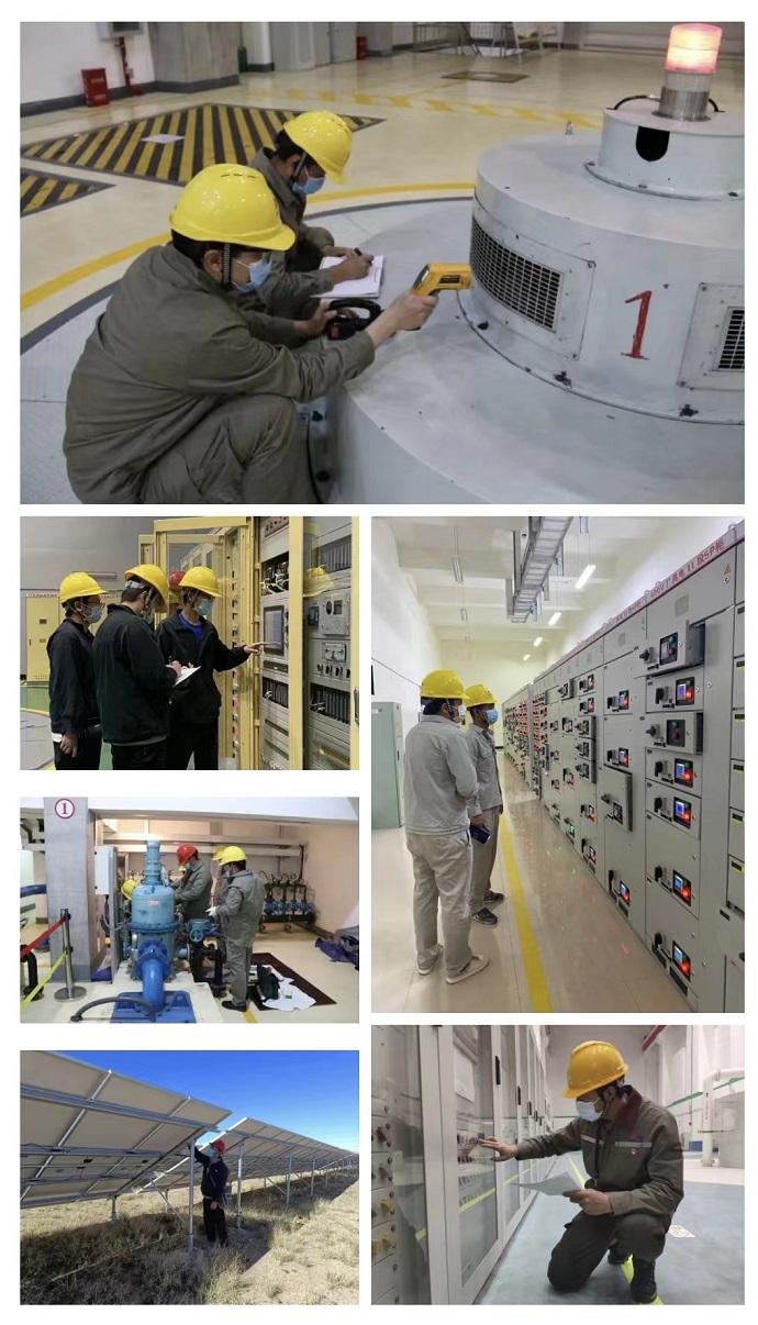 加強(qiáng)巡檢,保電護(hù)航。清能中心各電廠全體干部職工主動(dòng)帶頭、主動(dòng)作為、主動(dòng)擔(dān)當(dāng),加強(qiáng)巡檢、點(diǎn)檢和特巡頻次。認(rèn)真監(jiān)盤(pán)、細(xì)心維護(hù),加大巡檢力度,全面排查隱患,及時(shí)消缺,確保機(jī)組安全穩(wěn)定運(yùn)行,充分彰顯了新時(shí)代青年電力人的責(zé)任與擔(dān)當(dāng)。果多水電站在保供電期間共開(kāi)展設(shè)備消缺9項(xiàng),每日開(kāi)展特維巡檢3次,按期開(kāi)展柴油發(fā)電機(jī)啟停、泄洪閘門(mén)啟閉、保護(hù)系統(tǒng)壓板核對(duì)、避雷器動(dòng)作次數(shù)、泄露電流檢查和GIS氣室壓力檢查等定期工作,為疫情期間電站穩(wěn)發(fā)保供奠定了堅(jiān)實(shí)基礎(chǔ)。金橋水電站在保電期間完成每天設(shè)備巡檢共計(jì)16次,點(diǎn)檢2次,特巡4次,消缺維護(hù)12項(xiàng),認(rèn)真完成每一秒監(jiān)盤(pán)、每一次操作、每一次巡檢,每一個(gè)消缺,確保在這非常時(shí)期設(shè)備安全穩(wěn)定運(yùn)行。瓦托水電站共開(kāi)展定期巡檢、交接班巡檢、設(shè)備點(diǎn)檢、領(lǐng)導(dǎo)帶班檢查、防汛檢查、特維巡檢等巡視檢查巡檢86次,巡視中發(fā)現(xiàn)的3號(hào)機(jī)組滑環(huán)室碳刷打火嚴(yán)重問(wèn)題,及時(shí)利用3號(hào)機(jī)組停機(jī)備用時(shí)間組織相關(guān)人員開(kāi)展緊急處理,清理碳粉、更換碳刷,防止機(jī)組轉(zhuǎn)子一點(diǎn)接地故障,為3號(hào)機(jī)組安全穩(wěn)定運(yùn)行提供了保障,確保電站正常運(yùn)行。這樣的例子在每個(gè)電站有很多。“今年全國(guó)旱情都太嚴(yán)重了,入庫(kù)流量太少,我們一定盡最大努力做好保電工作”,這是清能中心每個(gè)電站工作人員共同的心聲。在奮戰(zhàn)一線的全體職工的共同努力下,保證了安全、保證了生產(chǎn)、保證了電量,實(shí)現(xiàn)了零非停,以實(shí)際行動(dòng)為西藏人民“保電護(hù)航”。據(jù)統(tǒng)計(jì),自8月10日以來(lái),清能中心累計(jì)發(fā)電量 11058萬(wàn)千瓦時(shí),上網(wǎng)電量10936萬(wàn)千瓦時(shí),為本次疫情防控提供了強(qiáng)有力的電力保障。
