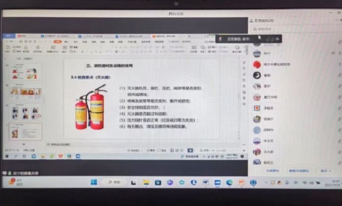 11月11日,油氣管道分公司組織開展消防安全知識線上專題學習會。會議傳達學習了西藏自治區(qū)國資委關于轉發(fā)《2022年“119”消防宣傳月活動方案》的通知和《消防安全基礎知識培訓手冊》,觀看了《2022年近期住宅小區(qū)消防安全警示片》。