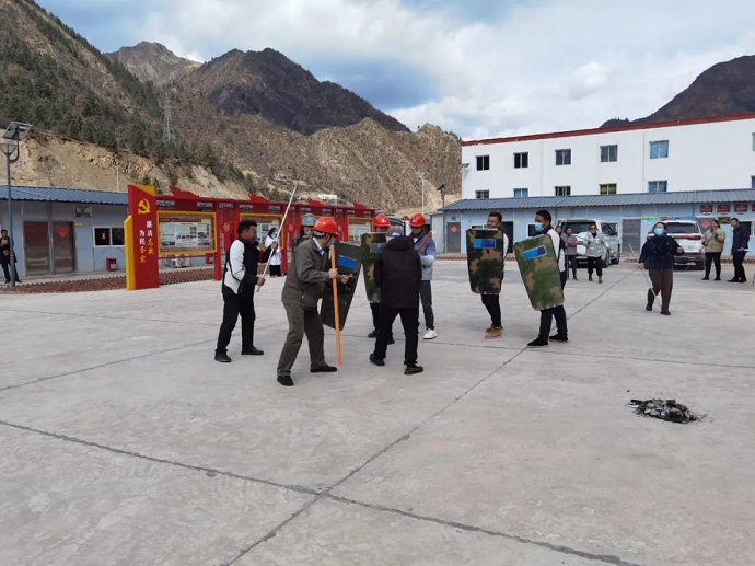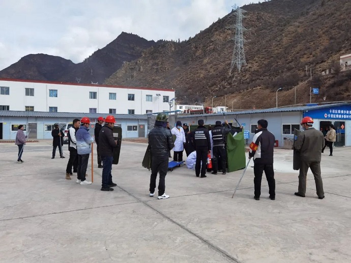 3月15日,果多水電公司與柴維鄉(xiāng)政府、柴維鄉(xiāng)派出所、柴維鄉(xiāng)衛(wèi)生院聯(lián)合開展反自焚、反恐怖襲擊應急演練。