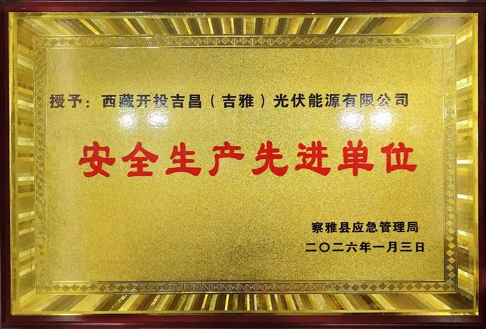 近日,西藏開(kāi)投吉昌(吉雅)光伏能源公司被察雅縣應(yīng)急管理局授予“安全生產(chǎn)先進(jìn)單位”榮譽(yù)稱號(hào)。
