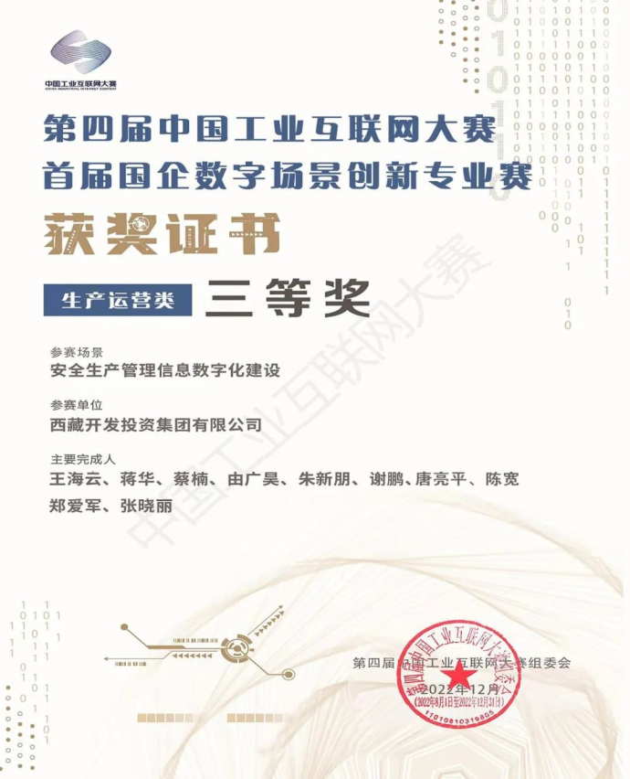 近日,西藏開(kāi)發(fā)投資集團(tuán)有限公司在國(guó)務(wù)院國(guó)資委首屆國(guó)企數(shù)字場(chǎng)景創(chuàng)新專業(yè)賽中榮獲生產(chǎn)運(yùn)營(yíng)類三等獎(jiǎng)。