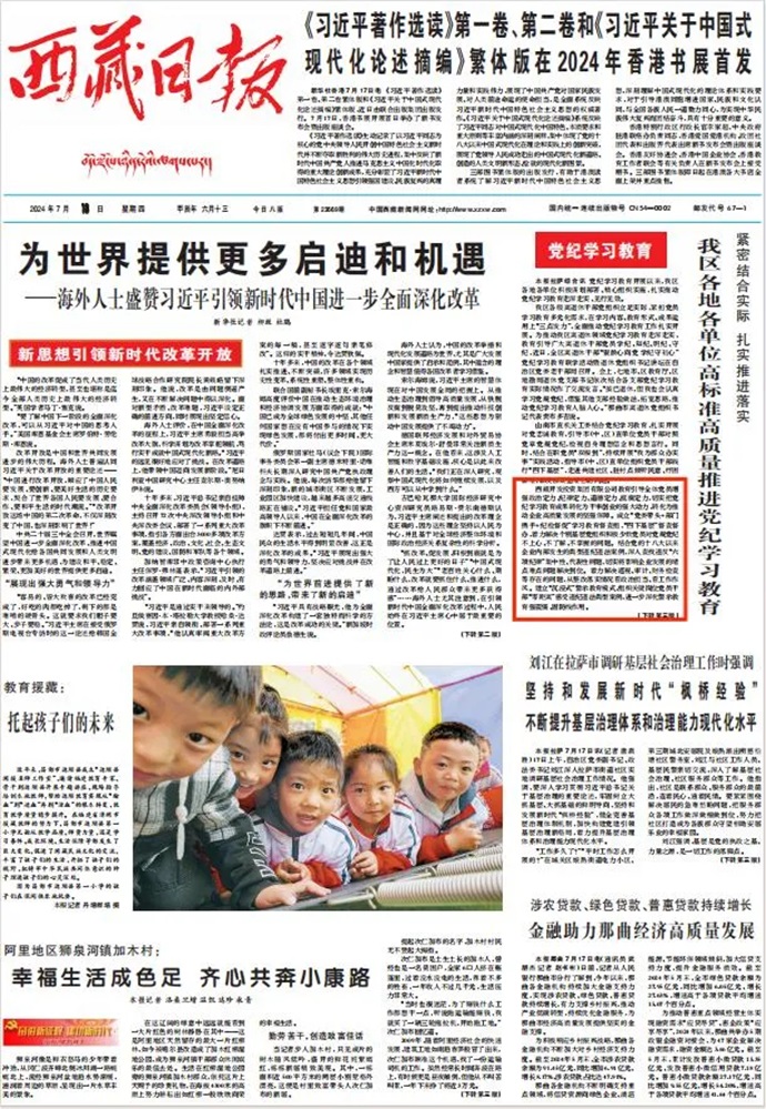 編者按:7月18日,西藏日報報道了《緊密結合實際 扎實推進落實 我區(qū)各地各單位高標準高質(zhì)量推進黨紀學習教育》文章。摘要如下: