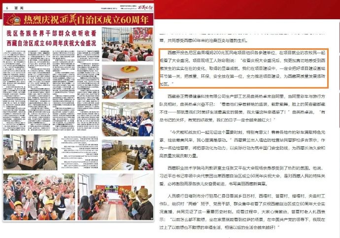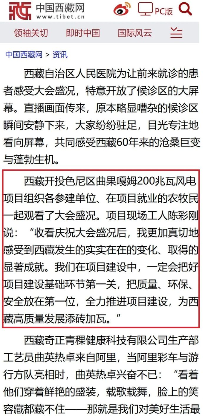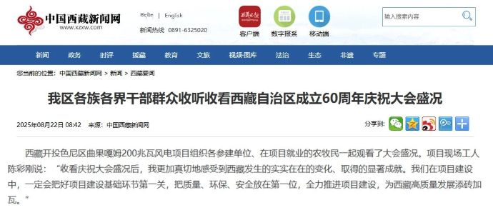 ?。冈?2日,西藏開投色尼區(qū)曲果嘎姆200兆瓦風電項目組織各參建單位干部職工、在項目就業(yè)的農(nóng)牧民一起觀看西藏自治區(qū)成立60周年慶祝大會盛況的消息,被中國西藏網(wǎng)、西藏日報、中國西藏新聞網(wǎng)、西藏法制報等各級媒體平臺宣傳報道。