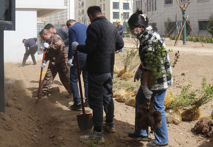 活動現(xiàn)場,在聽取工作人員講解植樹注意事項后,大家三五一組、分工協(xié)作,有的揮鍬鏟土、填苗澆水,有的培土圍堰、澆水灌溉,還有的清掃垃圾、搬運雜物?,F(xiàn)場氣氛活躍、組織有序,呈現(xiàn)出一片熱火朝天的忙碌景象。每道工序一絲不茍、認真細致,展現(xiàn)了團結(jié)協(xié)作、奮發(fā)向上的精神風貌。