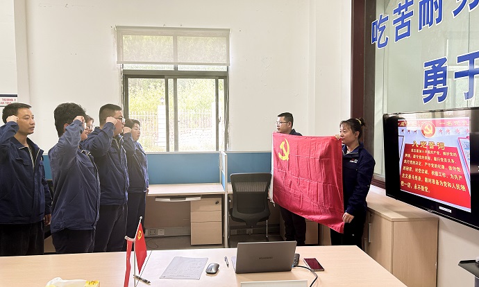 活動(dòng)伊始,莊嚴(yán)的升國(guó)旗、唱國(guó)歌儀式在嘎堆水電公司生活營(yíng)地舉行,鮮艷的五星紅旗在全體黨員和員工的注目禮中冉冉升起,雄壯的國(guó)歌聲響徹云霄。接著,嘎堆水電公司黨支部組織新黨員在黨員活動(dòng)室舉行了入黨宣誓儀式,并開(kāi)展了重溫入黨誓詞活動(dòng)。隨后,嘎堆水電公司黨支部書(shū)記謝鵬為大家上了一堂生動(dòng)的專(zhuān)題黨課。黨課圍繞黨的創(chuàng)新理論、黨的基本知識(shí)、黨的百年奮斗史、新時(shí)代偉大成就等方面展開(kāi),引導(dǎo)黨員們奮進(jìn)新征程、建功新時(shí)代。最后,黨員干部職工齊聚一堂,暢談黨的光輝歷程和豐功偉績(jī)。大家紛紛表示,立足崗位比貢獻(xiàn),進(jìn)一步發(fā)揮好黨組織的戰(zhàn)斗堡壘作用和黨員的模范表率作用。