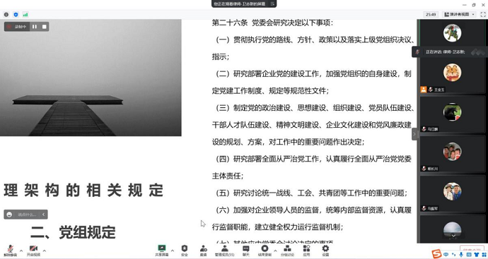 培訓(xùn)圍繞集團(tuán)公司章程規(guī)定、部門職責(zé)、三重一大規(guī)定三個方面作了系統(tǒng)講解,著重從合法、合規(guī)性方面進(jìn)行了分析。此次培訓(xùn),有效促進(jìn)了制度建設(shè)工作的法治化和規(guī)范化。下一步,集團(tuán)公司將結(jié)合上級要求,持續(xù)加強制度管理體系的建設(shè),優(yōu)化管理流程,筑牢集團(tuán)公司高質(zhì)量發(fā)展基石。