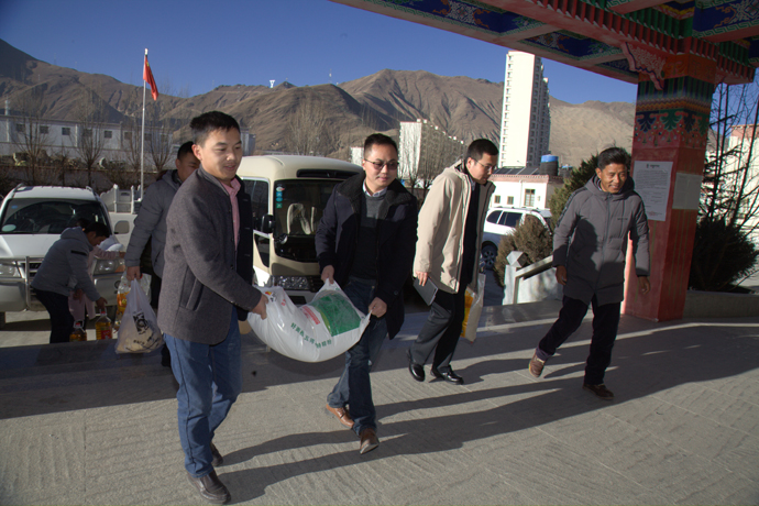 這天室外天寒地凍,高原圣潔的陽(yáng)光透過(guò)村委會(huì)的窗戶(hù)照在大家臉上,暖意洋洋。由西藏開(kāi)投集團(tuán)黨委研究決定、機(jī)關(guān)黨委組織舉辦的在職黨員進(jìn)社區(qū)報(bào)到慰問(wèn)活動(dòng)在這個(gè)寬敞又明亮的柳梧村居民委員會(huì)二樓活動(dòng)室按照計(jì)劃順利地進(jìn)行。