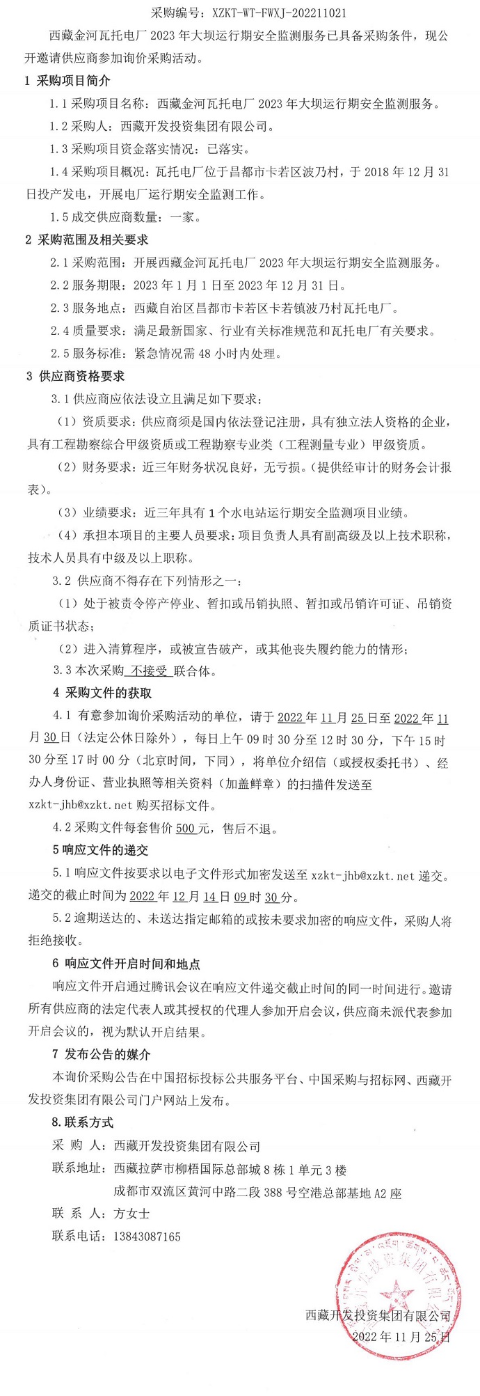 西藏金河瓦托電廠2023年大壩運行期安全監(jiān)測服務(wù)