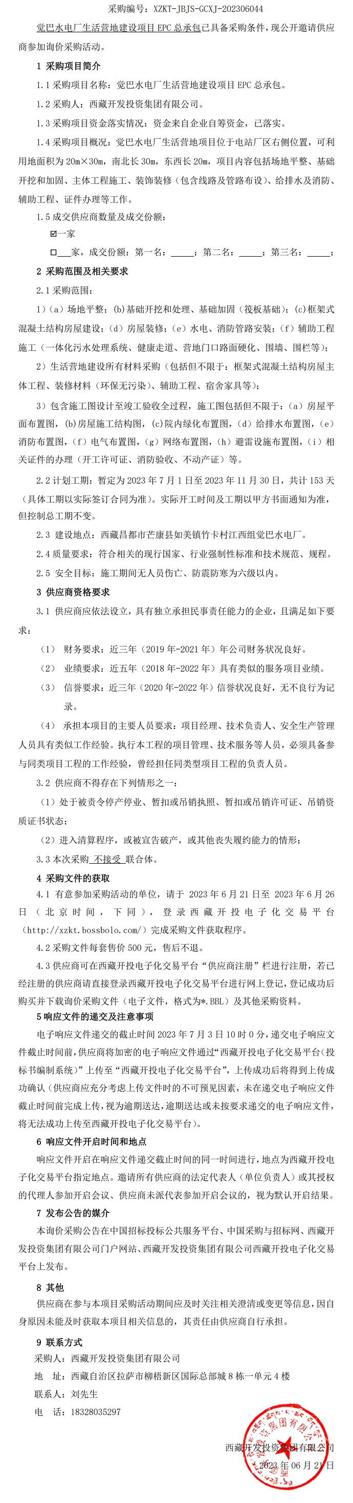 覺巴水電廠生活營地建設(shè)項(xiàng)目EPC總承包詢價(jià)采購公告