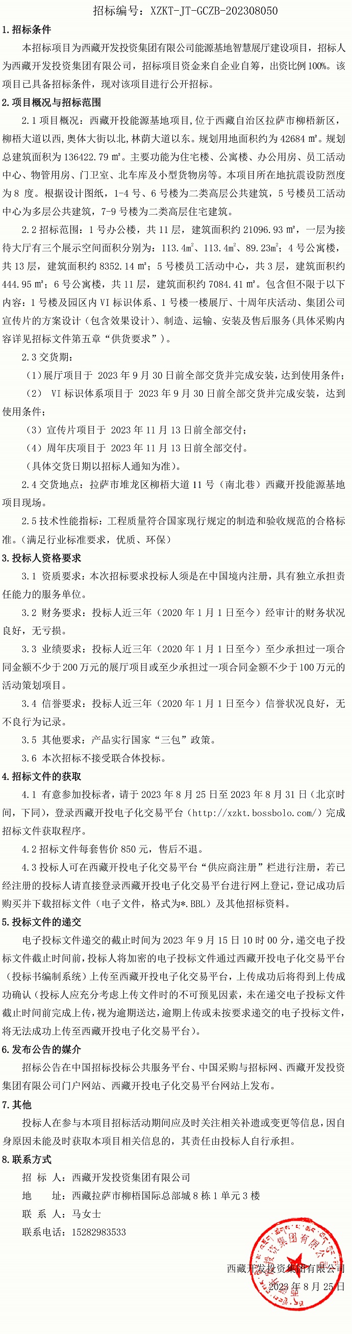 西藏開發(fā)投資集團有限公司能源基地智慧展廳建設(shè)項目招標公告