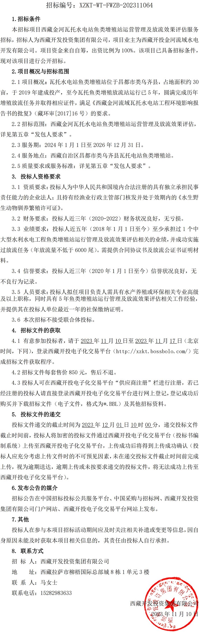西藏金河瓦托水電站魚類增殖站運營管理及放流效果評估服務(wù)招標(biāo)公告